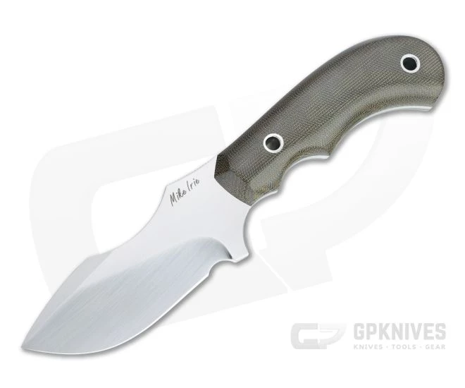 The Mike Irie Custom Model 114 is a tactical hunting and skinning knife built with versatility in mind. A broad hollow ground blade slices and pierces with ease while retaining good durability, and a stout Micarta handle delivers a secure grip and solid ergonomics in classic Irie style. Mike Irie is renowned for his hand ground blades and exceptional fit and finish, and this Custom 114 is no exception. This version comes with a hand rubbed satin CPM-S35VN stainless steel blade and green canvas Micarta handle scales.