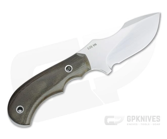 Blade:Â At nearly 1.5 inches wide the nearly 4 mm thick CPM-S35VN stainless steel blade is robust while offering exceptional performance thanks to a rising deep hollow grind, false edge swedge and deep scoop on the spine for added leverage in powerful cuts and good control for skinning and other precision tasks. An index guard and jimped thumb ramp provide optimal control, and a hand rubbed satin finish offers a stylish look.