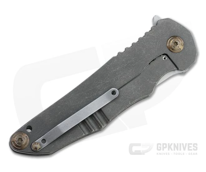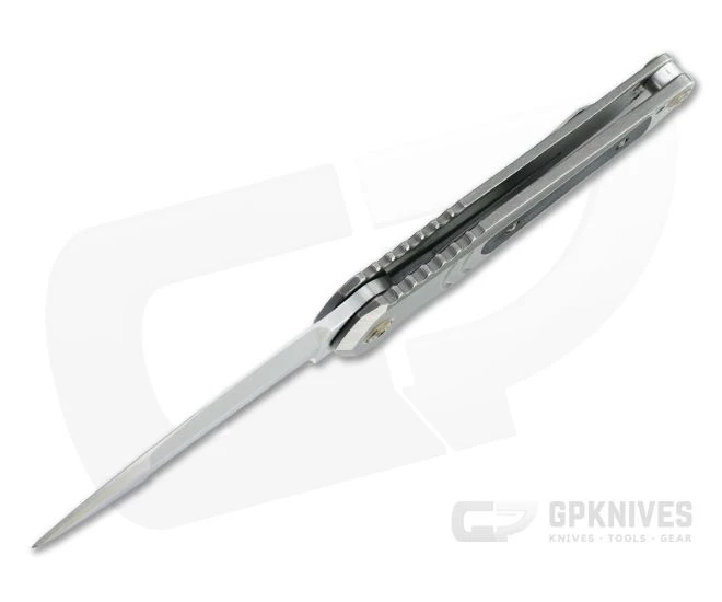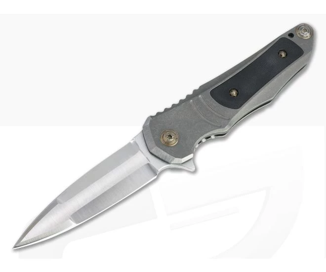 Handle: Thick slabs of chamfered, acid washed titanium joined by a single barrel spacer form the open back handle. It offers plenty of real estate for the largest of hands and has jimping, a deep index choil and a high traction black G10 inlay for a secure grip. The integral frame lock is smooth in operation and offers rock solid lockup for safe use.