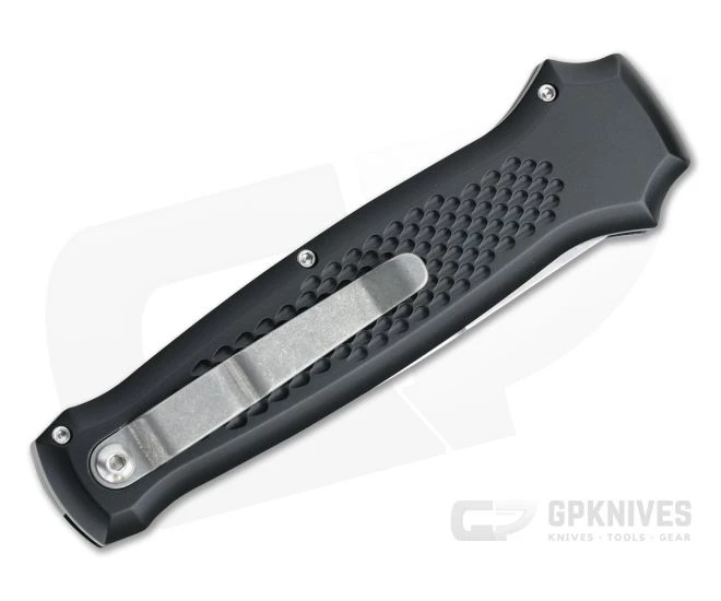 Part of the Bodyguard line from Piranha, the P12 Prowler offers a beefed up version of the dagger-like design with a tougher, 3 mm 154CM spear point blade and thicker handle construction. If you are looking for an automatic backup you can count on, look no further than the Prowler. This version comes with a stonewashed blade and black anodized aluminum handle.