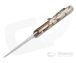 Part of the Bodyguard line from Piranha, the P12 Prowler offers a beefed up version of the dagger-like design with a tougher, 3 mm 154CM spear point blade and thicker handle construction. If you are looking for an automatic backup you can count on, look no further than the Prowler. This version comes with a stonewashed blade and Desert Camo anodized aluminum handle.