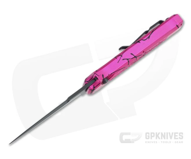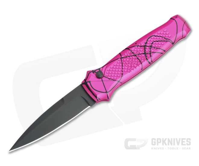 Part of the Bodyguard line from Piranha, the P12 Prowler offers a beefed up version of the dagger-like design with a tougher, 3 mm 154CM spear point blade and thicker handle construction. If you are looking for an automatic backup you can count on, look no further than the Prowler. This Tactical version comes with a black PVD coated blade and pink anodized aluminum handle.