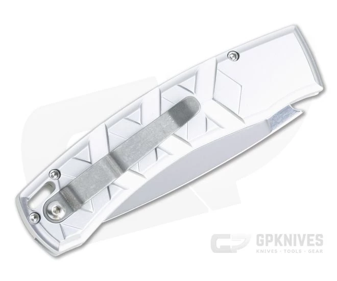 A robust EDC automatic, the Piranha X deploys time tested construction and materials in a clean, modern design. Aircraft grade aluminum houses the blade and button lock automatic mechanism for fast deployment and secure lockup. Deep x-pattern milling gives the knife its name and an ultra secure grip. This version comes with a mirror polished blade and silver aluminum handle.