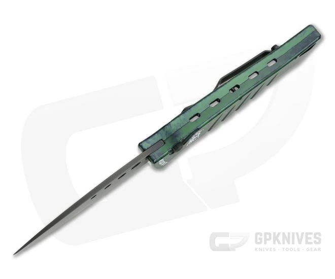 Blade:Â The sleek, drop point 154CM blade comes in durable, non-reflective black PVD for added corrosion resistance and discreet use. Powered by a strong coil spring the blade deploys with authority at a touch of the button. The 3Â mm thick blade is strong and fully flat ground for excellent slicing and piercing performance with four blade holes for style.