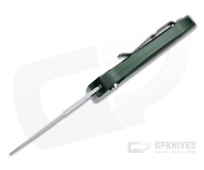 A smaller and lighter version of the Bodyguard, the Piranha Miniguard delivers the same classic dagger-like spear point, symmetrical handle and authoritative automatic deployment in a more EDC friendly platform. Lightweight, rugged 6061-T6 aluminum construction pairs with a high performance, S30V blade for all around utility. Compact and discreet in carry, the Miniguard makes a great gentleman’s tactical carry. This version comes with a stonewashed blade and green anodized aluminum handle.