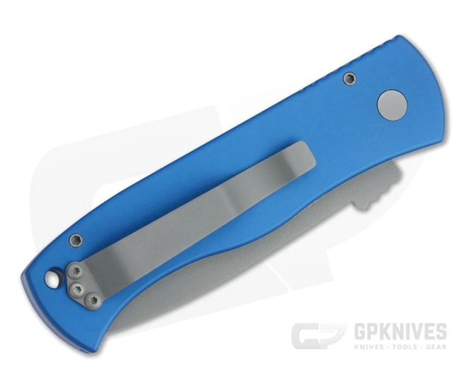 This snappy collaboration between Emerson and Protech Knives is lightweight, tactical, intimidating and just plain cool. Protech executes the classic CQC-7 is their typically flawless automatic construction. This version comes with a blue anodized aluminum handle and matte gray blasted chisel ground 154CM Tanto blade with matching hardware and clip.