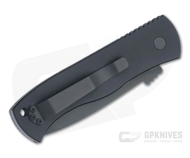 Emerson and Protech have teamed up to deliver an American made automatic version of the tactical CQC-7 folder. Protech provides high-tech American production for affordability, performance, and precision construction. The Pro-Em CQC-7 auto delivers high speed automatic action and rugged aluminum construction to this popular Emerson design. This one off version features a two-tone black DLC Tanto blade, custom black and red crosscut G-Carta top and mosaic pin button inlay.