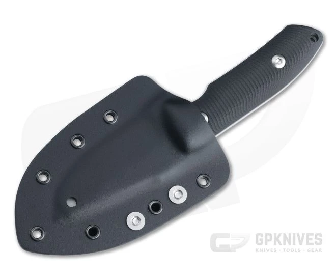 An iconic Les George design, the Rockeye is a fantastic all around knife for hunting, outdoor and tactical use. Protech has delivered production versions of the Rockeye in multiple sizes as both a fixed blade and automatic folder, all with exceptional fit and finish. Versatile and functional, the SBR or Small Bladed Rockeye fixed blade is a compact knife that functions as a utilitarian EDC blade with plenty of potential as a defensive tool. This version features a two-tone CPM-S35VN blade, 3D textured black G10 scales and a molded Kydex sheath.