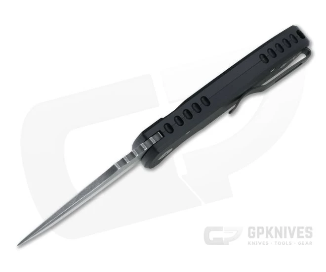 The Protech Knives SBR (Short Bladed Rockeye) is a utilitarian, compact, every-day-carry version of the Les George iconic Rockeye model, retaining the classic design in a smaller package. The SBR has the same American innovations as the Rockeye, featuring modern materials, high-tech manufacturing, advanced coil spring mechanism, and quality American production. This left-handed version has a tumbled, Acid Washed S35VN blade, smooth black hard anodized aluminum handles and blasted hardware.