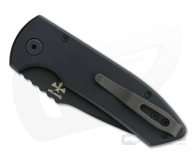 The Protech Knives SBR (Short Bladed Rockeye) is a utilitarian, compact, every-day-carry version of the Les George iconic Rockeye model, retaining the classic design in a smaller package. The SBR has the same American innovations as the Rockeye, featuring modern materials, high-tech manufacturing, advanced coil spring mechanism, and quality American production. This left-handed version has a black DLC coated S35VN blade, smooth black hard anodized aluminum handles and matching hardware.