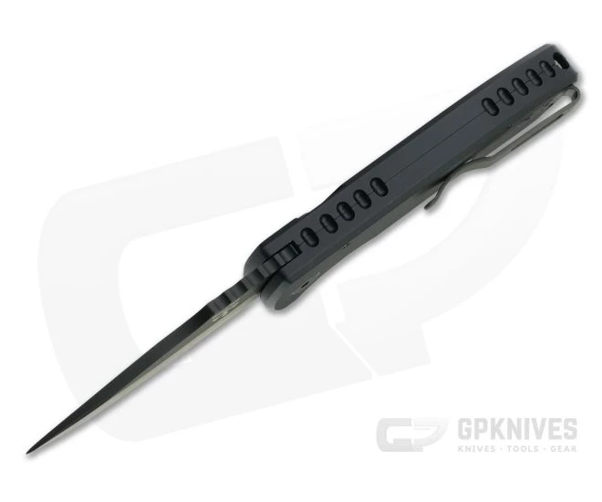 Handle:Â The ergonomic, hard anodized 6061-T6 aluminum handle provides an ergonomic feel in a variety of grips and deploys smoothly from the pocket for use. The left-hand button lock mechanism provides reliable lockup and smooth operation. Complementing the blade the button and hardware come in matching black.