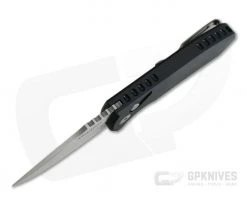 The Protech Knives SBR (Short Bladed Rockeye) is a utilitarian, compact, every-day-carry version of the Les George iconic Rockeye model, retaining the classic design in a smaller package. The SBR has the same American innovations as the Rockeye, featuring modern materials, high tech manufacturing, advanced coil spring mechanism, and quality American production. This version of the SBR has a two-tone, stonewashed/satin finished S35VN stainless plain edge blade, smooth Black Hard Anodized aluminum handles and blasted hardware.