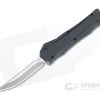 The Protech Tactical Response TR-4.F3 is a full-size, tactical, button lock automatic that is durable, comfortable, lightweight and fast in the hand. The saber ground, drop point blade is simple and functional for both utility and martial use. This Limited Edition version comes with a CPM-D2 tool steel blade with black DLC coating and Feather Texture Black hard anodized aluminum handles.