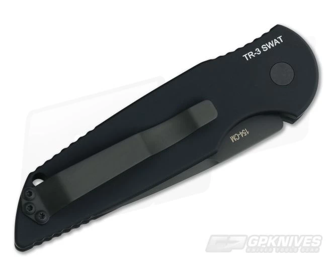 Year after year the Protech Tactical Response 3 is one of the most popular knives with law enforcement and military personal. Trusted by the most elite military on the planet, the TR-3 is a thoughtfully designed automatic knife that is slender and easy to carry. This version of the TR-3 comes with grooved handles, a black coated blade and black hardware and is outfitted with a convenient lanyard hole and pocket clip.