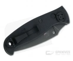 Blade: Satin finished and coated with striking sapphire blue PVD, the versatile S35VN drop point profile blade comes with a high saber grind for balanced performance and spine swedge tapering to a fine, piercing tip. The button operated coil spring mechanism delivers fast one hand deployment with a black slide safety for added security in carry.