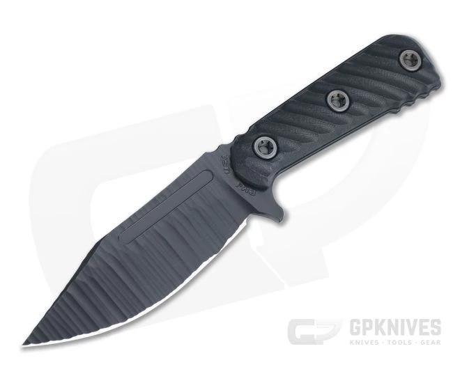 The UCAP from RMJ Tactical is a compact, combat-inspired fixed blade that delivers a military grade cutting tool that is just as functional as a utilitarian cutting tool in outdoor and survival environments. The robust, Nitro-V Stainless Steel construction is complemented with a refined top swedge and grooved, high-height saber grind delivering a blend of durability and cutting performance. RMJ does G10 like no one else, with 3D machined texture and beautifully contoured ergonomics. The UCAP offers a fantastic one-tool-option for nearly any scenario. This version has a hand textured and Black Elite Cerakote blade and updated hardware for fast, easy handle scale changes.