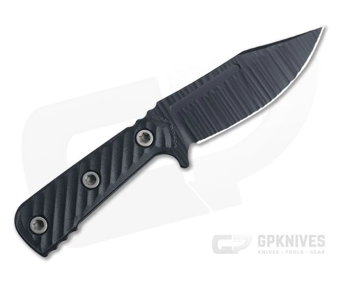 Handle: 3D machined Black G10 scales are contoured and textured for a secure and ergonomic grip and attached with upgraded hardware to the skeletonized full tang handle. The new hardware allows for fast and easy removal of the scales with a simple flat head screwdriver for cleaning, maintenance and scale changes. Targeted areas of jimping provide sightless indexing and added traction. The handle ergonomics are enhanced by the chamfered spine being proud to the scales giving a fuller in-hand feel.
