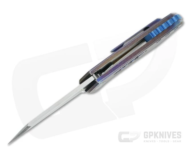 Handle: Â Anodized custom finished slabs of thick 6Al4v titanium create the handle with the exposed jimped back spacer. Chamfered edges provide comfort with a solid, ergonomic design. The D2 tool steel lock face delivers flawlessly smooth operation on the rock solid frame lock, while the reinforced window cutout on the front provides added style. Includes signed, embossed certificate of authenticity and Pelican 1030 waterproof case for storage.