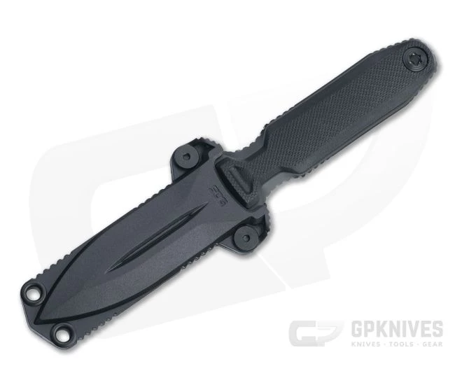 Based on the original SOG Pentagon dagger, the Pentagon FX gets a premium upgrade in materials while retaining the popular dagger design that has made this the choice of military and uniformed professionals the world over. The Pentagon FX Covert offers this same premium design in a smaller more concealable package. This “Blackout” version comes with a black TiNi CPM-S35VN blade and matching G10 handles.