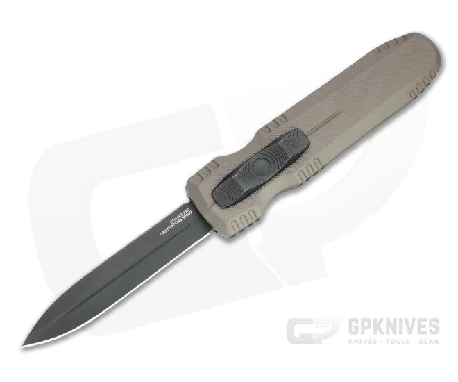 Blade:Â A classic, symmetrical double edge dagger profile is delivered in black titanium nitride coated CRYO S35VN for balanced performance, good corrosion resistance and a discreetly non-reflective finish. A +3.5 inch blade operates fast and smooth via double action automatic mechanism. Press forward to deploy and back to retract, its simple and reliable and fully ambidextrous thanks to the top slide location. Dual fullers add aesthetic appeal while the dual cutting edges and fine point make this an effective combat tool.