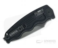 Blade:Â Durable, corrosion resistant Japanese AUS-8 stainless steel is finished with a non-reflective Black TiNi coating for discreet use. A spear-like top swedge and high hollow grind offer powerful piercing and slicing performance with good durability and enhanced slicing thanks to the sweeping recurve of the edge. Aggressive jimping on the thumb ramp insures a safe and secure grip during heavy use. Powered by a coil spring mechanism the blade deploys with lightening speed automatically at a touch of the button.