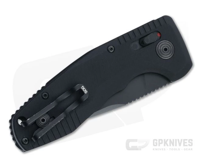 Based on the design of the original SOG-TAC automatic, the TAC XR introduced the ambidextrous XR Lock to this iconic platform. SOG is back again with the next evolution in the TAC AU automatic folder. It retains the XR lock with the addition of a double-action safety that allows for secure carry with fast deployment. A robust construction makes this a popular choice with military, law enforcement and civilian users alike. This Compact CA Special version comes with a California-legal, sub-2 inch black titanium nitride coated D2 tool steel blade and matching 6061-T6 aluminum handle scales.