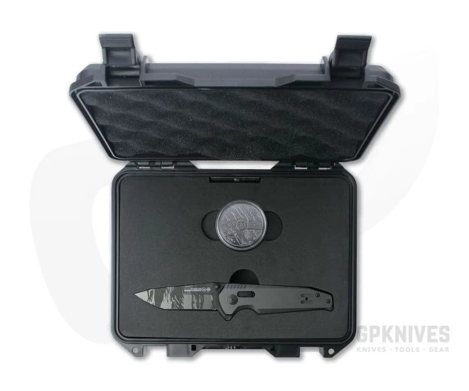 Handle:Â Strong, ultralight carbon fiber liners support milled titanium scales for a solid heft and comfort in the hand. The handle houses the robust XR lock which can withstand up to 1500 pounds of force while being smooth and easy in operation. The streamlined design of the handle allows for comfort in multiple grips and carries well in the pocket. Includes specialized hard case and commemorative coin.