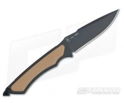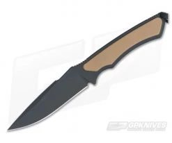 The Spartan Blades Phrike Combat/Utility EDC fixed knife with Desert Tan G10 inlays is named after the Greek goddess of horror. This is a lightweight option built for self-defense. It utilizes a swedged drop point CPM S35VN black SpartaCoat blade for strength and durability in all conditions. Textured tan G10 handles have been inlayed to the full tang and a notched thumb ramp provide a superior grip. Includes a black and a tan lanyard plus a tan Nylon MOLLE sheath with plastic insert.