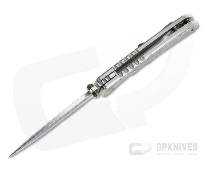 Blade:Â A classic, utilitarian drop point blade is made from CPM-S45VN with a top swedge and high saber grind for balanced performance and durability. The heavy stonewashed finish hides wear from use while looking great. Riding on rugged bronze washers the blade deploys fast and smooth via dual titanium thumb studs. Aggressive jimping on the thumb ramp offers added traction and a point for indexing.