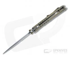 Blade:Â A classic, utilitarian drop point blade is made from CPM-S45VN with a top swedge and high saber grind for balanced performance and durability. Stonewashed for a rugged look that will hide everyday wear. Riding on reliable bronze washers the blade deploys fast and smooth via dual titanium thumb studs. Aggressive jimping on the thumb ramp offers added traction and a point for indexing.