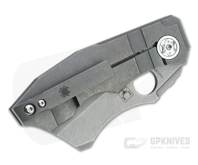 David Rydbom of Kingdom Armory lends his eye for dramatic design to the Spyderco Stovepipe. Inspired by his “Bill the Butcher” design this cleaver blade folder has a rugged, industrial build with a thick titanium frame lock construction. Paired with the stout handle is a 4 mm thick 20CV blade with a deep hollow grind for slicing performance. Both blade and handle come equipped with a dark heavy stonewashed finish that is practical and appealing.