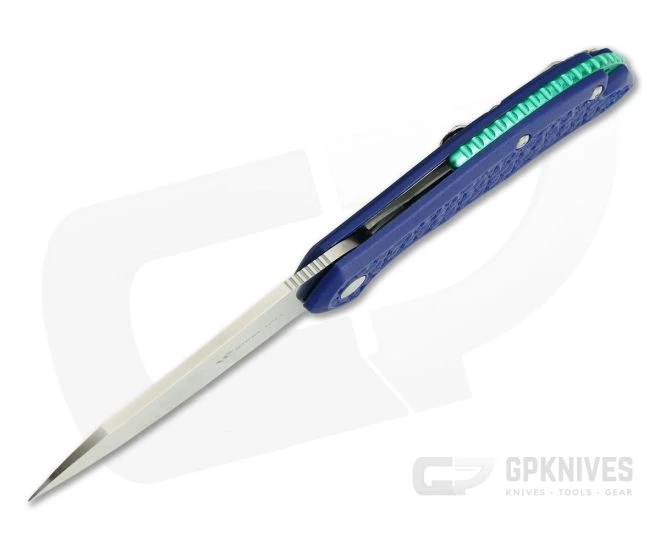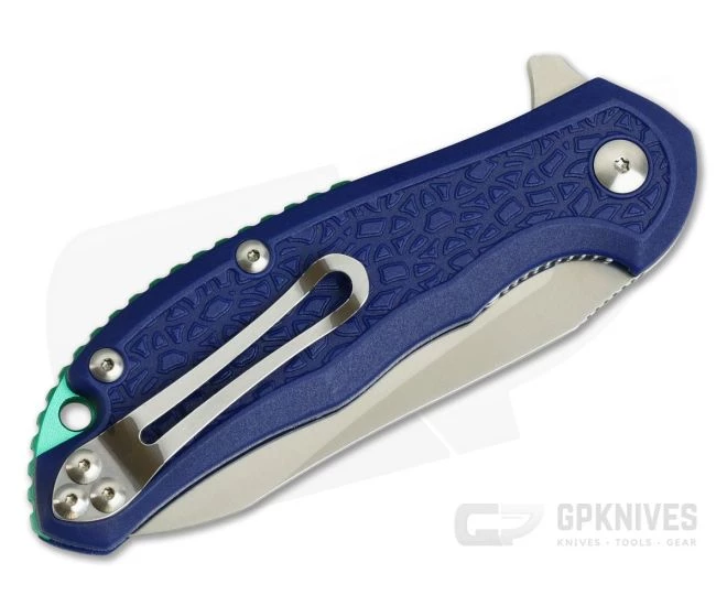 Handle:Â Lightweight fiberglass reinforced nylon is textured for grip but smooth and contoured around the edges for comfort during use. The classic blue FRN captures a jewel green anodized aluminum backspacer that has jimping along the spine in increase traction in the hand. Nested steel liners are skeletonized for further weight reduction and form a liner lock mechanism that offers smooth operation and secure lock-up of the knife.