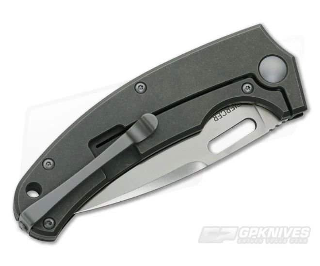 Handle:Â The clean and sweeping lines of the Piercer’s handles give the knife a great look while providing a secure and comfortable grip. An index finger cutout gives access to the frame lock and provides a guard to prevent sliding onto the blade. A black G10 front scale offers enhanced traction in the hand while the robust, dark stonewashed titanium frame lock mechanism is simple, smooth and secure with a hardened steel lock face insert and integrated over-travel prevention. Open back construction with small titanium back spacer reduces weight and makes cleaning and maintenance easy. A generous hole at the pommel end allows for lanyard attachment.