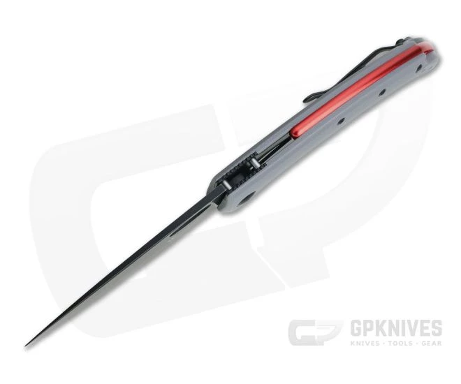 Handle:Â Clean, sweeping lines of the G10 handles give the knife a stylish look with an ergonomically contoured design for maximum comfort during extended use. A deep finger cutout allows access to the inset stainless steel liner lock which is simple, smooth and robust for secure lockup. A nearly full length, red anodized aluminum back spacer protects the blade when closed and end with and exposed section with a milled hole for lanyard attachment.