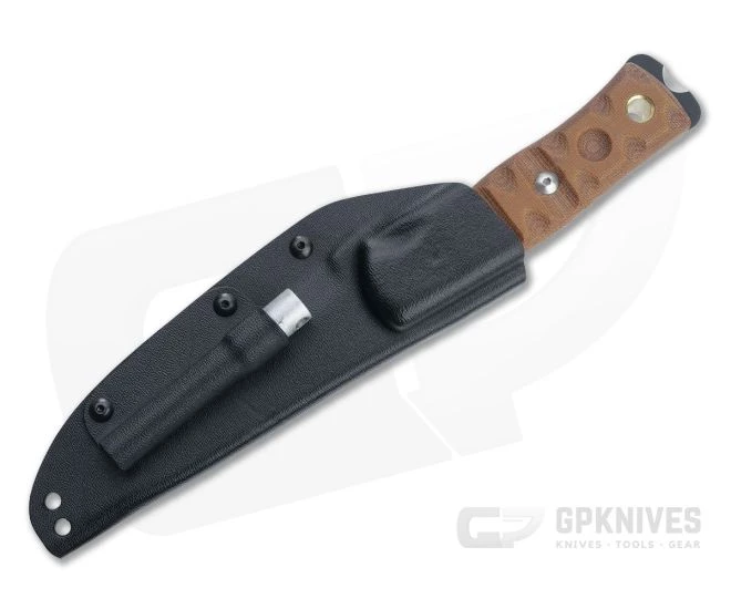 Handle: The full tang construction supports generous scales of contoured Micarta over fiber liners for comfort and style. Tough and weather resistant, the Micarta scales deliver traction even when wet, further enhanced by the Rocky Mountain Tread milling. A neutral design offers versatility in the grip while thumb scallops near the hilt provide control during fine work, and the exposed pommel can be used as an impact and fire making tool. Includes piggyback ferrocerium rod.