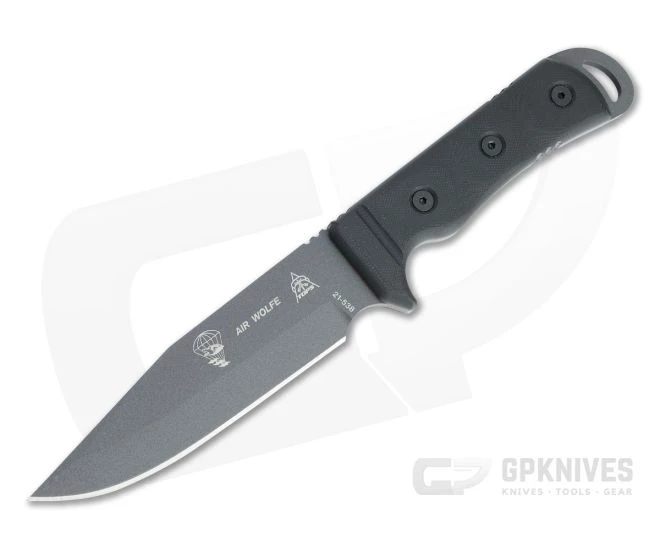 Designed to meet the rigorous requirements of military air crews, TOPS Knives Air Wolfe is a hardworking tool that is reliable on land or in the air. The stout construction allows it to handle the tough jobs like shelter building or campsite clearing with ease while offering fine control for slicing straps and rope or impromptu food prep with an ergonomic handle for all day comfort. The Air Wolfe comes with a blade of Tactical Gray Cerakote coated 1095 and black G10 handle scales.