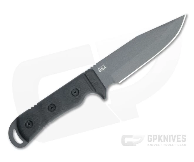 Blade: The combat oriented clip point profile comes with a thick tang and saber grind for optimal strength and general utility. A forward choil provides optimal control for fine work and allow for easy sharpening of the full edge. Durable “Tactical Gray” Cerakote coating adds corrosion resistance to the 1095 carbon steel blade and makes is non-reflective for discreet use.