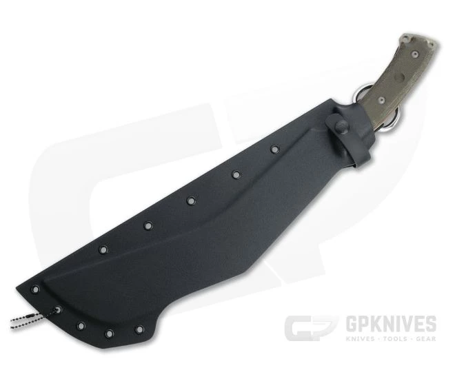 Evolving from the popular El Chete chopper, the TOPS Bestia is an upsized chopper design with blending traditional kukri and parang designs with TOPS Knives bomb-proof construction. If you needed more chopping power TOPS has answered the call with the Bestia. This version comes with a Tactical Stone powder coated 1095 carbon steel blade and tan and green canvas Micarta handle scales.