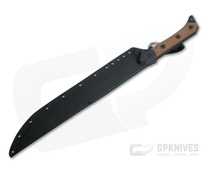 Handle:Â The full tang construction supports the layered Tan and Black Canvas Micarta handle scales attached with robust, black oxide hardware. Micarta is exceptionally durable while providing a comfortable and secure grip even when wet. A generous forward guard and a striking Punyo tip at the pommel frame the ergonomically designed handle.